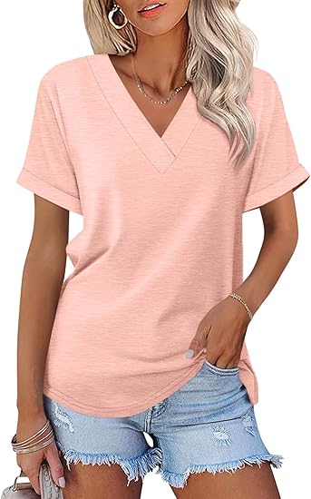 T Shirts Short Sleeve V Neck Tees Womens Fashion Tops Trendy Lightweight Soft 2024 Casual Summer Spring Outfits