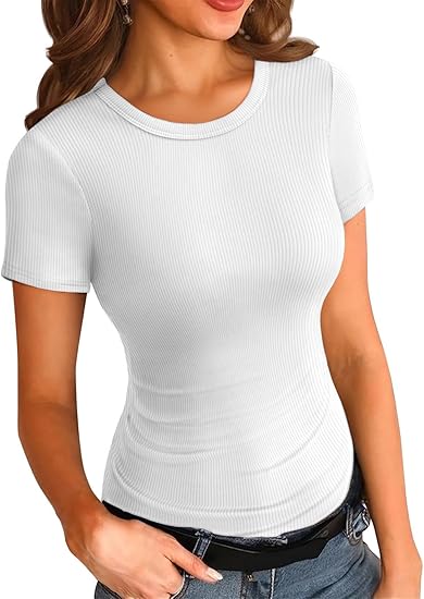 Women's Crew Neck T Shirt Ribbed Fitted Shirt Basic Short Sleeves Summer Tops Causal