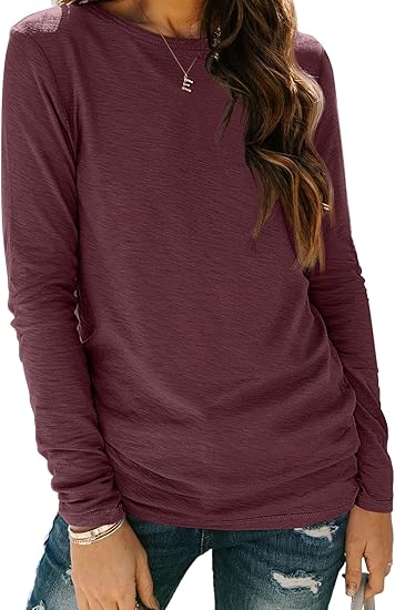Womens Long Sleeve Round Neck Shirts Basic Tee Fall Tops Outfits Clothes 2024