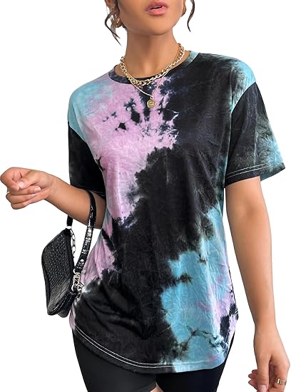 Women's Tie Dye Shirt Short Sleeve Round Neck Tees Casual T Shirts Summer Tops