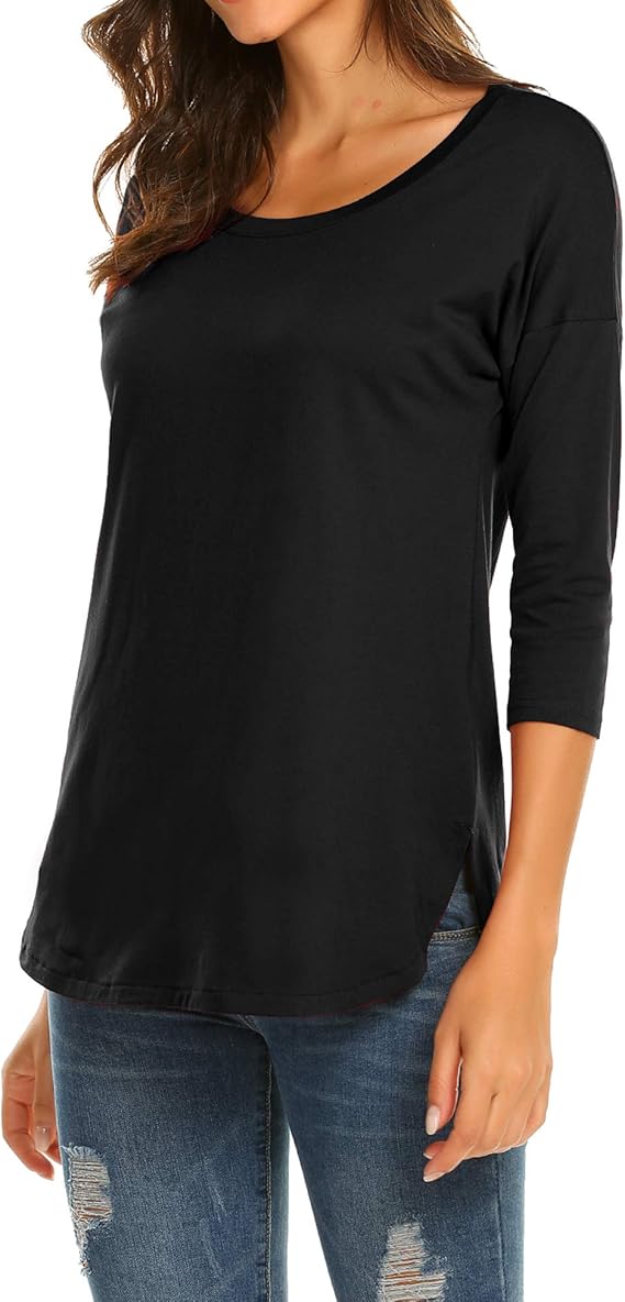 Women's Casual 3/4 Sleeve Loose Tunic Tops Scoop Neck T-Shirt