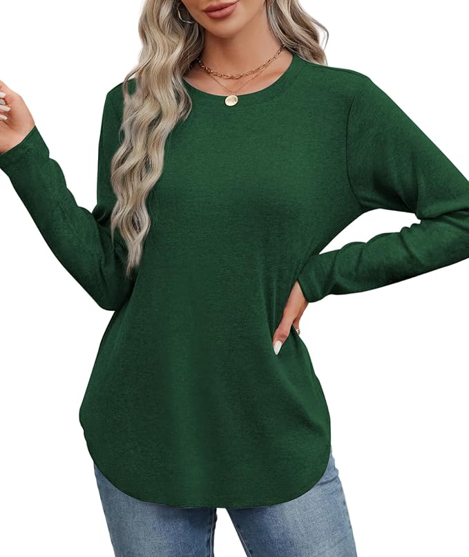 Long Sleeve Shirts for Women Crewneck Tunic Tops Womens Causal Basic Pullover Loose Fit Blouses Side Split Top Trendy